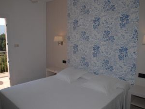 Cette chambre familiale se compose de 2 chambres communicantes séparées par un hall d'entrée, et deux portes d accès séparées pour chaque chambre. Elle possède 2 grandes terrasses une pour chaque chambre . La chambre double offre une vue sur la mer, tandis que la chambre simple donne sur la montagne.